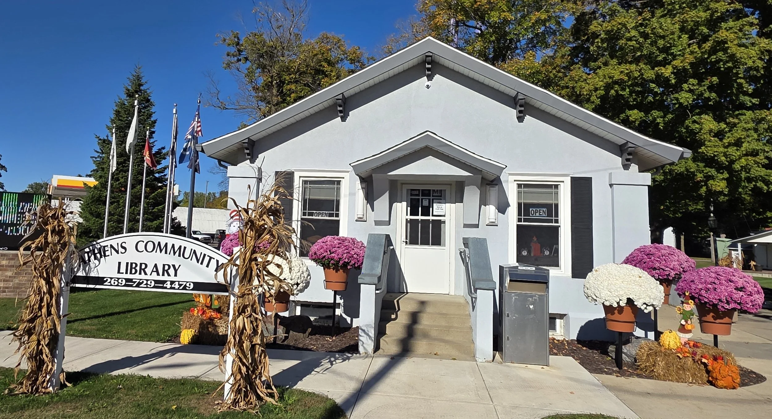 The building that houses the library was built in 1922 as a memorial to soldiers and sailors of all the wars. The “Community House”, as it was referred to at that time, housed not only the library but the village offices as well. When the building was dedicated in 1923, residents of the village presented a large wall clock, which still provides the time of day for patrons. A small oak library table and chair, donated by the residents at the same time, are still in use and serve as a reminder to the historic period of the library. The library went through an extensive remodel in 2008 with an addition to the building as well as the basement.